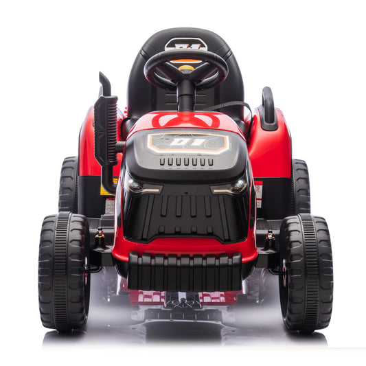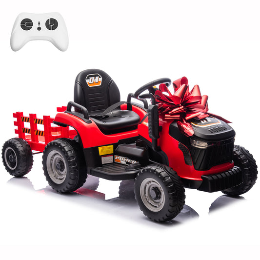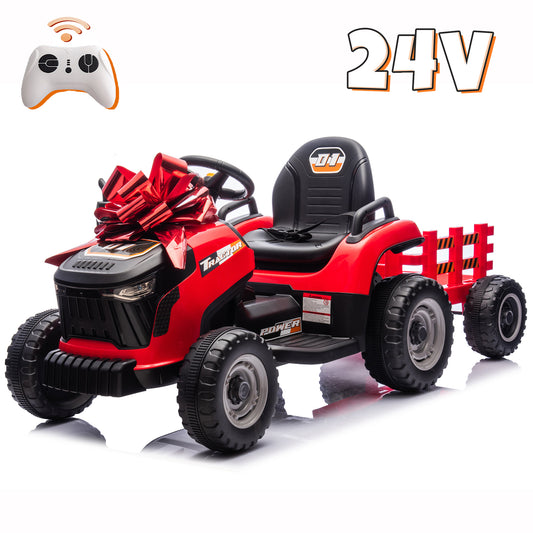 24V Kids Ride on Tractor with Remote Control, Dual Motors Electric Battery Powered Motorized Vehicle w/ Trailer, Bluetooth Music, Outdoor Toys, Red030