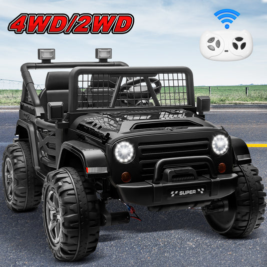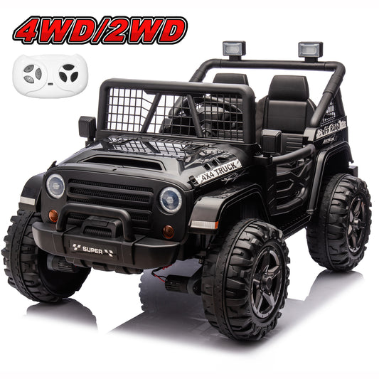 24V 4x4 Kids Ride on Truck w/ Remote Control, 2 Seater Ride on Toys Car with 4 Wheels Spring Suspension, 3 Speeds, Bluetooth Music for Boys Girls, Black