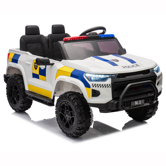 24V Kid Ride on Police Cop Car Battery Powered Electric Truck with Parental Remote Control, Siren, Flashing Lights, Music, Spring Suspension, White