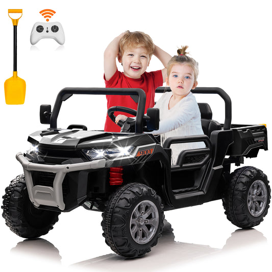24V Kids Ride on Dump Truck with Remote Control, 2 Seater Powered 4-Wheel UTV Toys, 2x200W Ride on Tractor Car w/ Electric Dump Bed, Shovel, Bluetooth Music