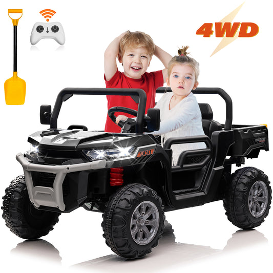 24V 4WD Ride on Toys Truck with Remote Control, 2 Seater Electric Car for Kids, Powered Cars Wheels w/ 4x100W, up to 5.5mph, Spring Suspension, Music, 0723