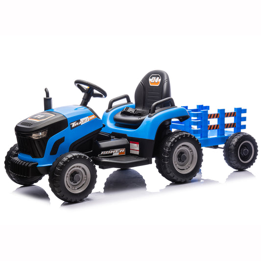24V Kids Ride on Tractor with Remote Control, Dual Motors Electric Battery Powered Motorized Vehicle w/ Trailer, Bluetooth Music, Outdoor Toys, Blue030